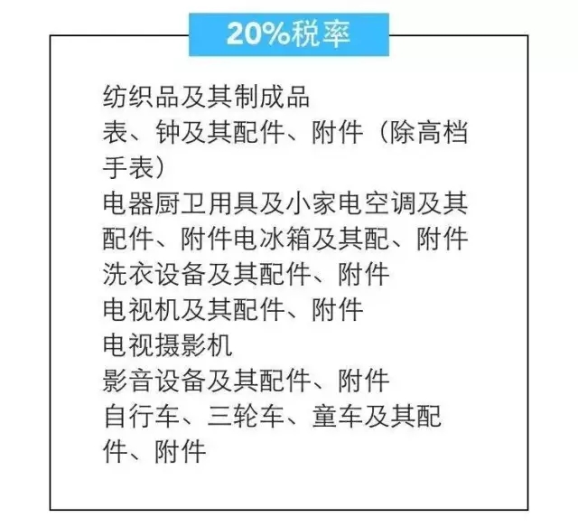 國家規定了20種不予免稅商品,分別是電視機、攝像機、錄像機、放像機、音響設備、空調器、電冰箱(電冰柜)、洗衣機、照相機、復印機、程控電話交換機、微型計算機及外設、電話機、無線尋呼系統、傳真機、電子計數器、打字機及文字處理機、家具、燈具和餐料等。即便是一部價值在5000元以下的手機,也是需要征稅的。