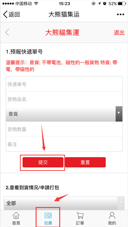 第四步:賣家顯示發(fā)貨后請(qǐng)您到會(huì)員中心預(yù)報(bào)快遞單號(hào)