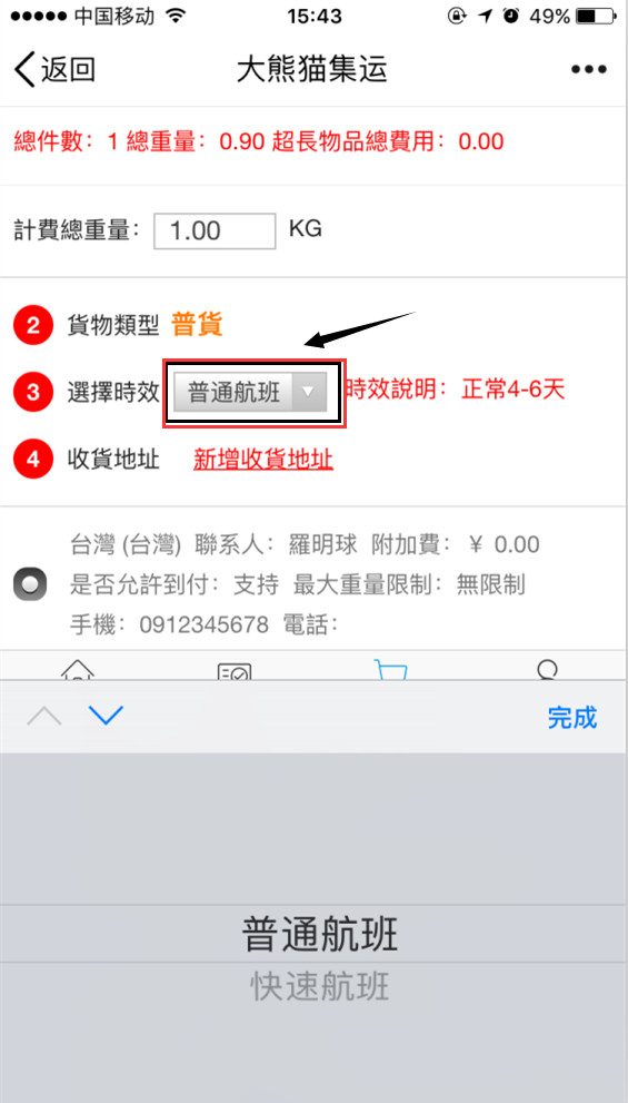 第六步:選擇快遞航班時(shí)效