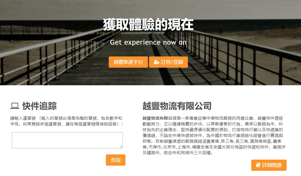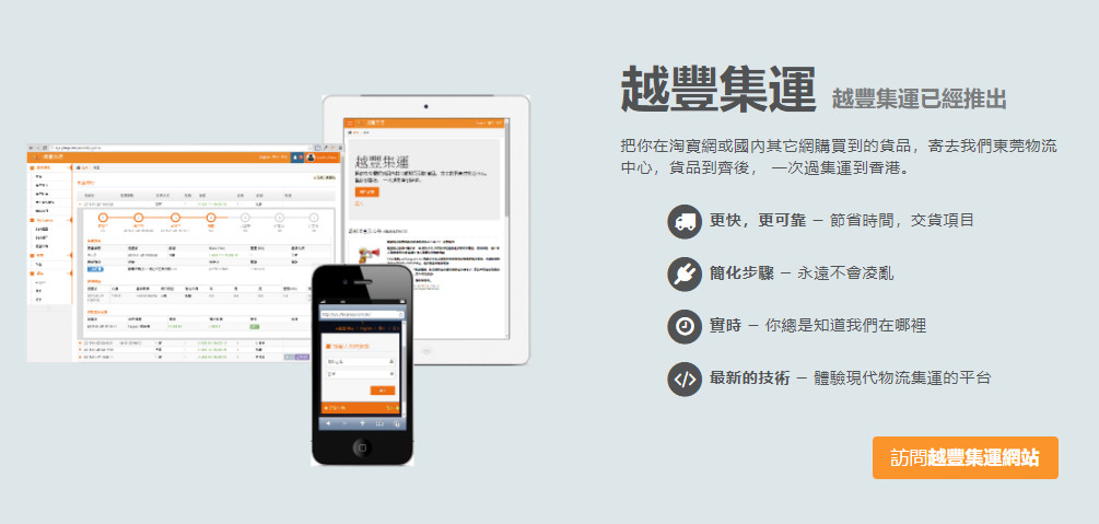 越豐物流有限公司是一家專業從事快遞服務的民營企業,該公司中港快遞,香港本地件業務為主, 提供門對門服務, 收派車輛遍達全港各工/商業區, 每日安排多趟獨立快件專車往來中港兩地,并由專業人員辦理報關清關手續, 使快件更快捷及穩妥地送達收件人。擁有強大的物流隊伍,服務蓋中港,包括香港,珠三角,長三角,環渤海地區, 廣東省,天津市,北京市,上海市,福建全省及全國大部分地區的快遞和快件。